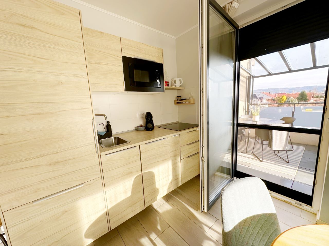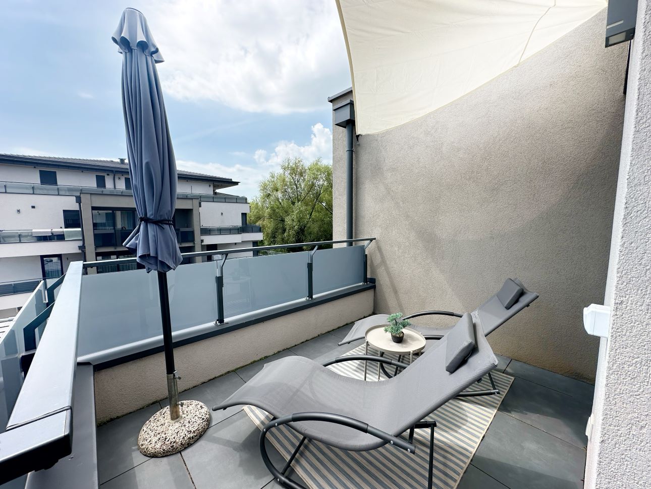 “Új építésű” apartmanunk, egy csodálatos, igényes környezetben. A penthouse jellegű terasz körbeöleli az apartmant és remek panoráma nyílik a keszthelyi hegységre. Minden helységből kijárat a teraszra.